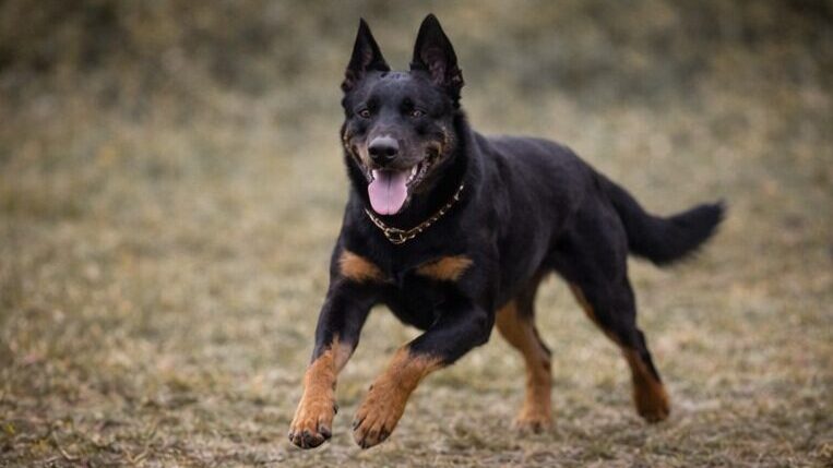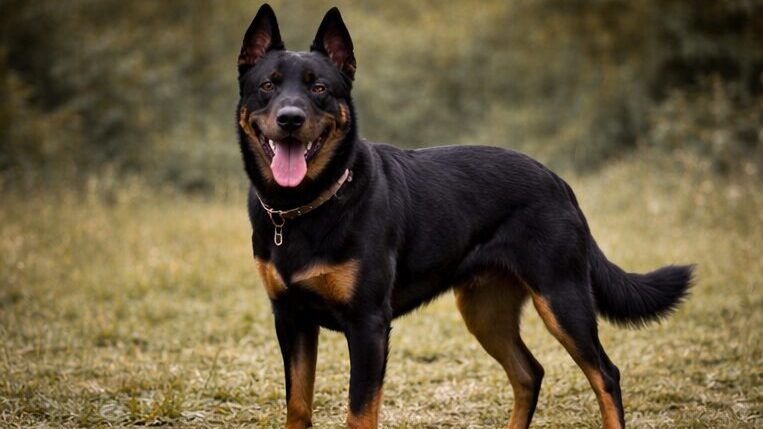 ボースロンは、黒とタンの精悍な外見と堂々とした体格から「ドーベルマンのような見た目の大型犬」と誤解されることがありますが、実際はフランス原産の牧羊・護衛犬として発展してきた作業犬です。