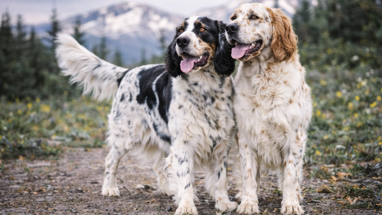 イングリッシュ・セターはイギリス原産の鳥猟犬で、獲物の位置を示す「ポイント(静止姿勢)」を取る役割を担ってきました。