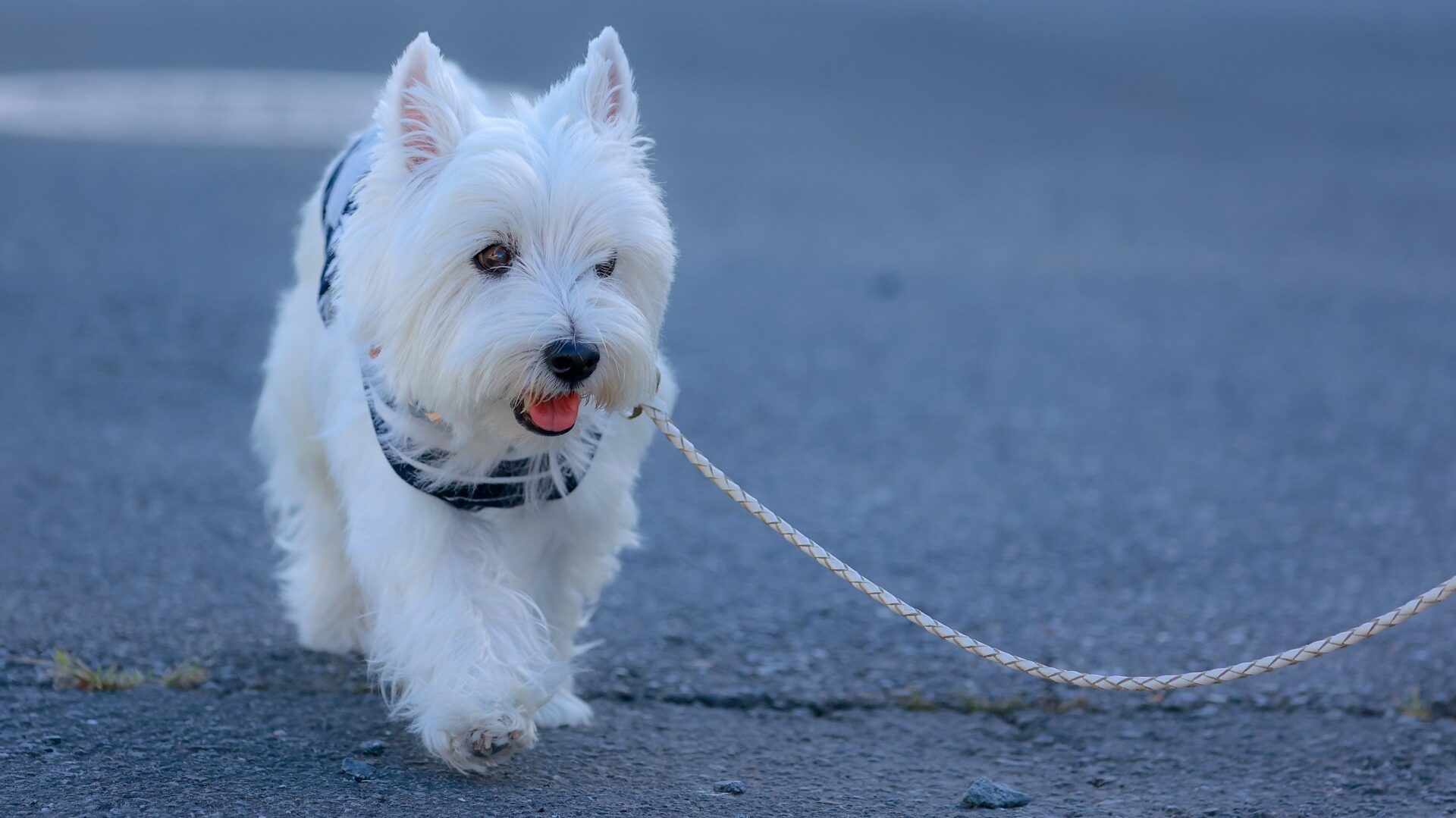 ウエスティは小型犬の中では運動量が多く、毎日の散歩は欠かせません。目安としては1日2回、合計30〜50分程度が望ましく、単なる排泄目的の短時間散歩では不十分です。